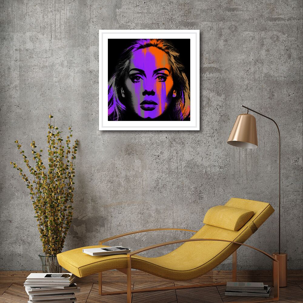 Original Giclee limited edition pop art prints produced on art paper or canvas using striking bold colour ways. Other prints with different finishes will be added continuously and can be produced on request. Framed in white or black wood using reflective glass. Canvas prints are stretched and mounted and framed or unmounted and unframed. All choices are available to buy online. Unframed prints are posted rolled in a tube.